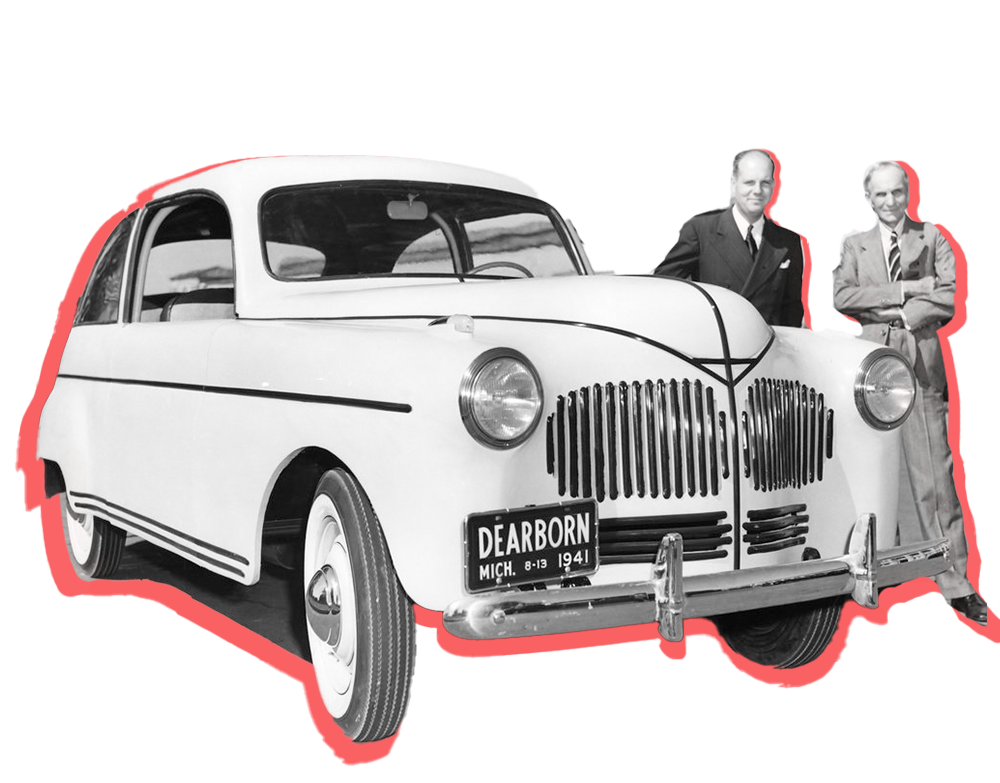 1941 — Henry Ford crea el primer carro de bioplástico. El carro era 1000 lbs. más ligero que uno de acero. Este invento innovador no resultó exitoso debido a una gran interrupción histórica, la guerra.