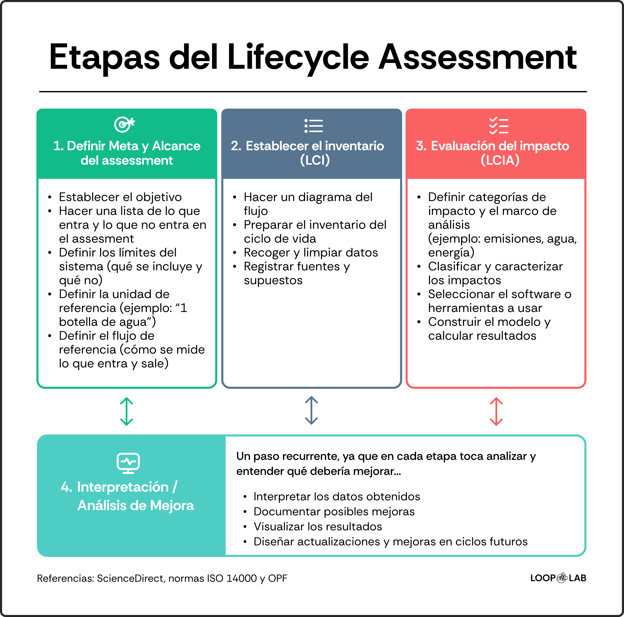 ISO 14040 / 14044: Normas internacionales que definen los principios, requisitos y estructura para llevar a cabo estudios de ciclo de vida (LCA).