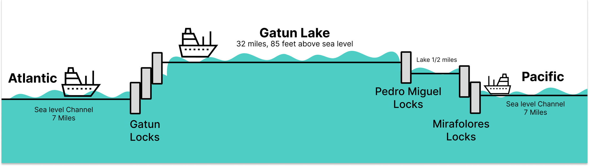 The Gatun Lake, engineered to provide freshwater for the canal's locks, lies in the heart of the canal. Each passage of a ship through the canal requires 200 million liters of freshwater equivalent to the daily water consumption of half a million Panamanians (🤯). The man-made lake has historically depended on rainfall for its supply. However, recent droughts and temperature fluctuations due to the El Niño Phenomenon have disrupted rainfall patterns. Despite Panama's equatorial climate, typically one of the wettest, rainfall has been 30% below average. Consequently, water levels in Lago Gatun have significantly declined, impacting the canal's operations and prompting restrictions on traffic.